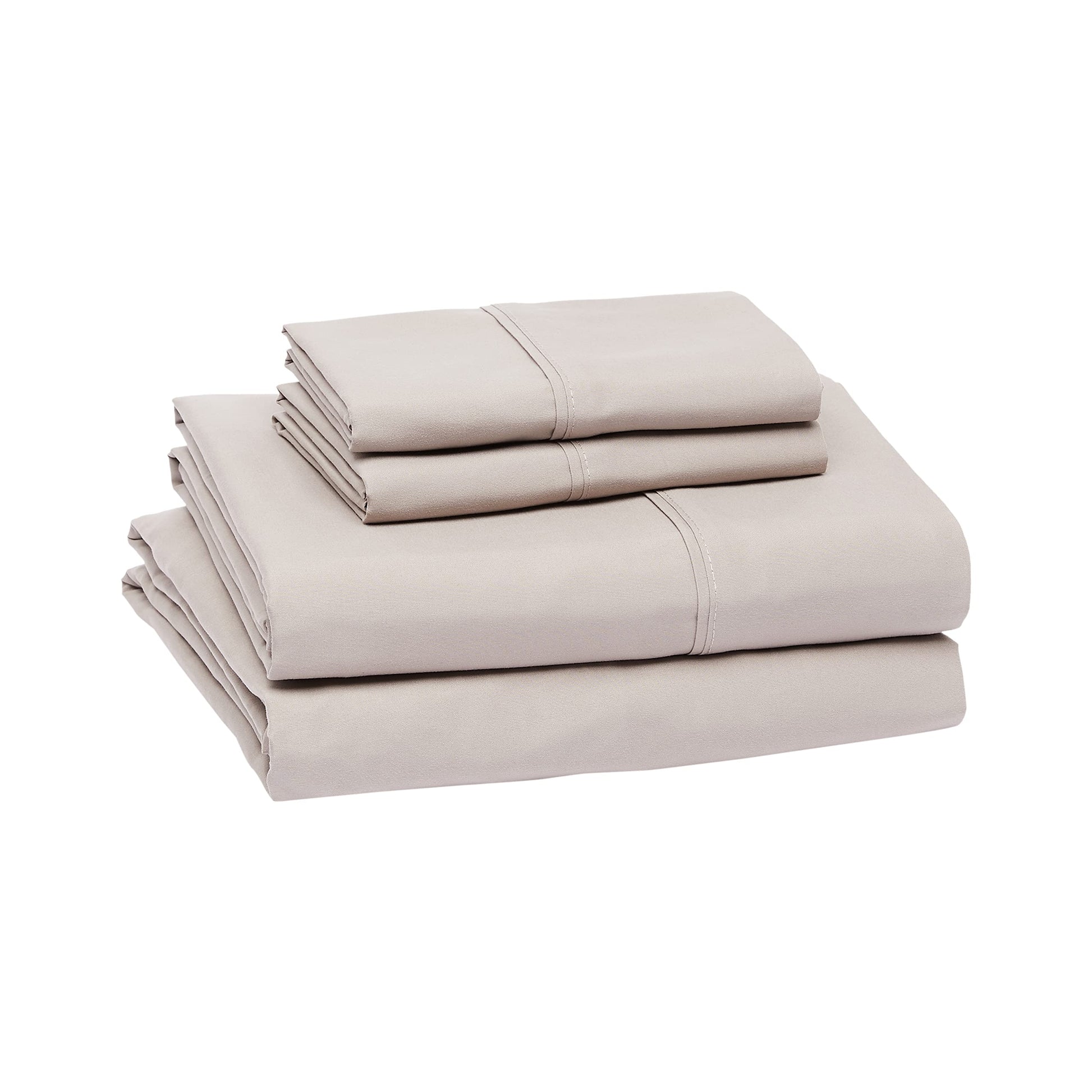 Amazon Basics Lightweight Super Soft Cooling, Easy Care Breathable Wrinkle Free Microfiber Comfortable 4-Piece Bed Sheet Set with 14-Inch Deep Pockets, Queen, Taupe, Solid