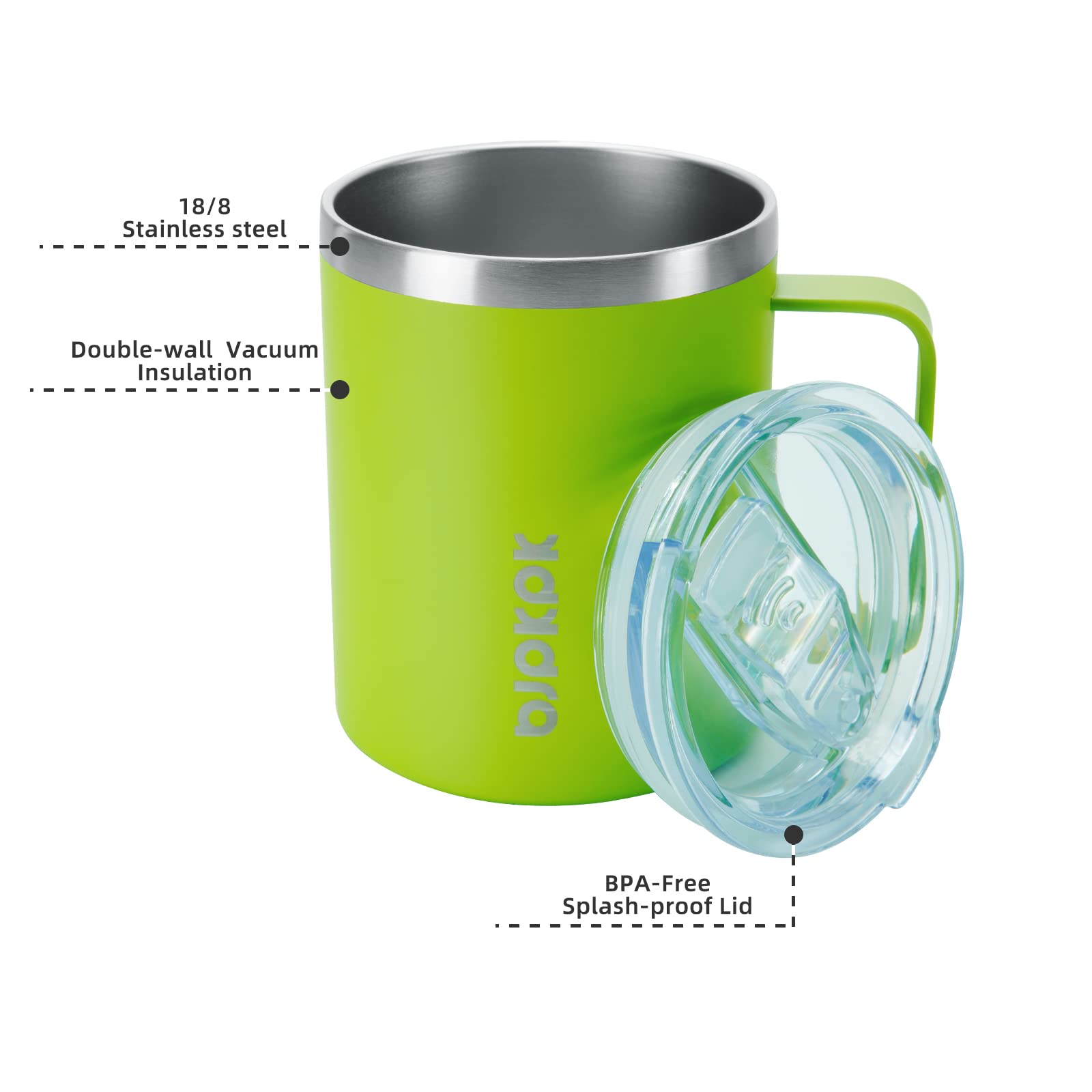 Details: 2 pcs Insulated Coffee Mug, BJPKPK 14oz Insulated Tumbler with Lid, Stainless Steel Coffee Cups with Splash Proof Lid-Green