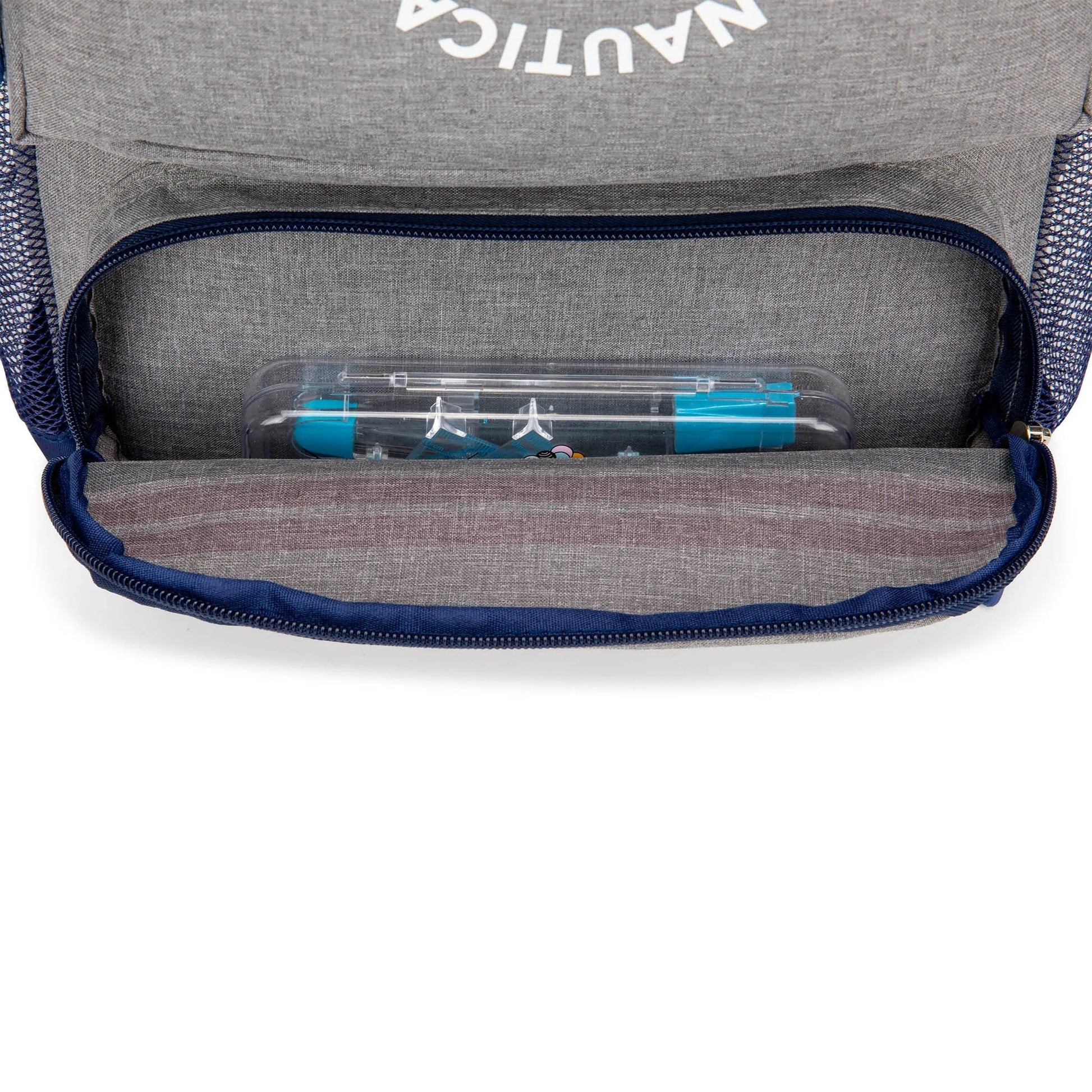 Comfort is key with the breathable padded back support and adjustable shoulder straps featuring a back-support sternum strap and safety reflective strips. The reinforced stitching ensures durability, while the top handle provides an alternative carrying option. Make school days exciting and organized with Nautica's kids backpacks.