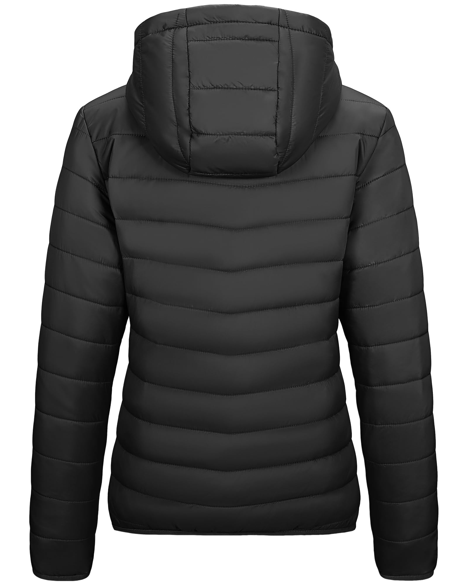 Outdoor Ventures Women's Packable Lightweight Full-Zip Puffer Jacket with Hood Quilted Winter Coat