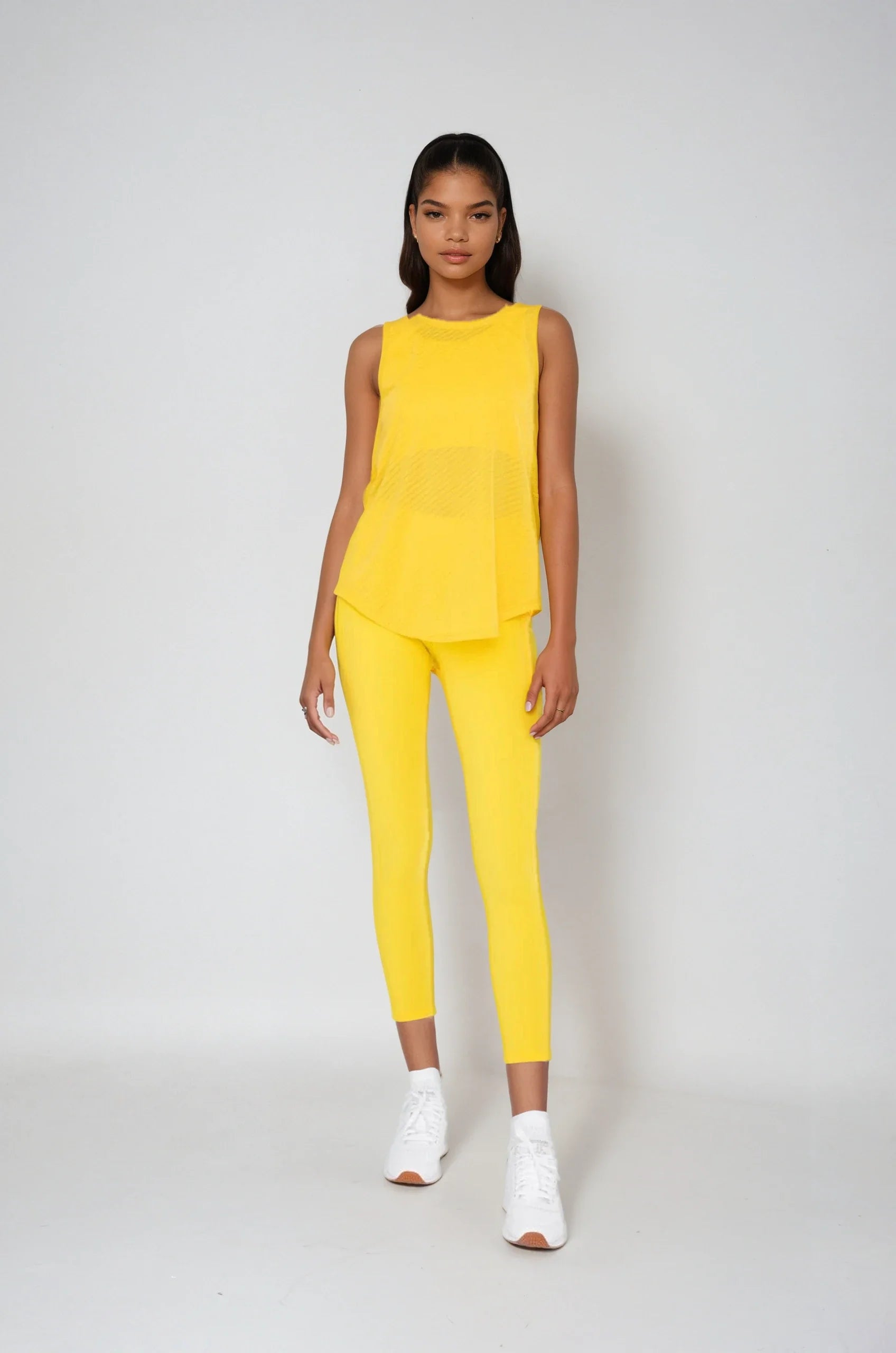 Sheer Striped Mesh Active Tank with Cut-Out Back Blue