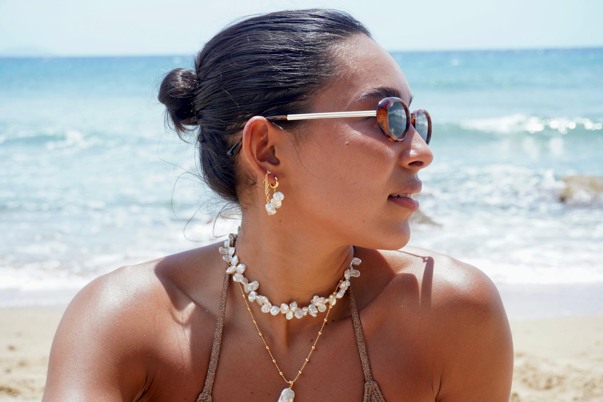 Indulge in the exquisite allure of our TAHITI DANGLE earrings. These sophisticated accessories feature unique cornflake baroque freshwater pearls, each with its own distinctive character and luminous sheen. Meticulously crafted with hypoallergenic 925 silver and elegantly dipped in 18k gold, they offer both luxurious appeal and gentle wear for sensitive skin. A refined statement piece that transitions effortlessly from day to evening occasions.
