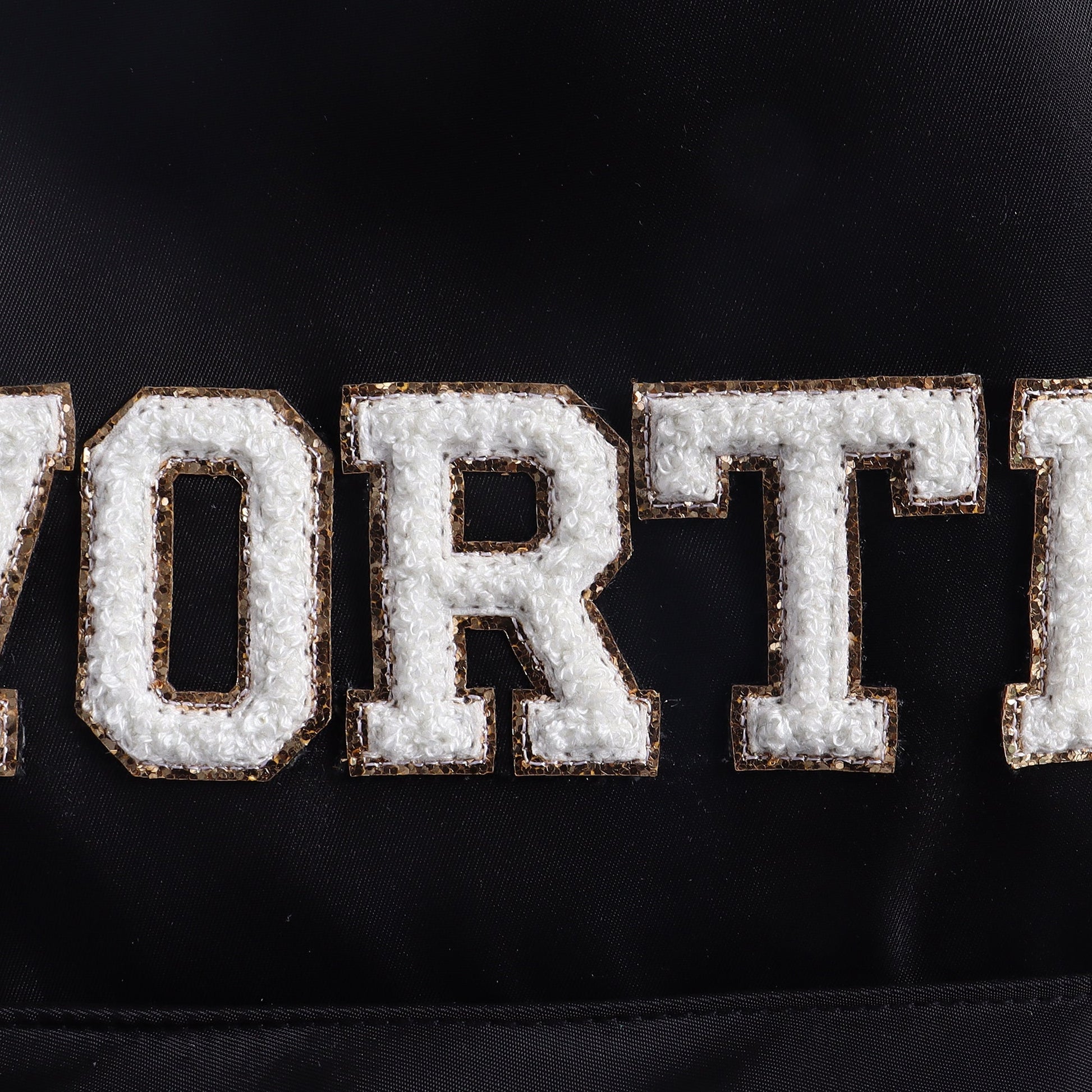 The Empower Luxe Carryall by FitKitty Culture™ combines style, functionality, and empowerment in one versatile package. At an impressive 11" x 8" x 5", this extra-large bag offers ample space for all your essentials while maintaining a sleek, jet-black aesthetic adorned with the glittering white and gold "WORTHY" emblem—a powerful reminder that you are capable of achieving anything.