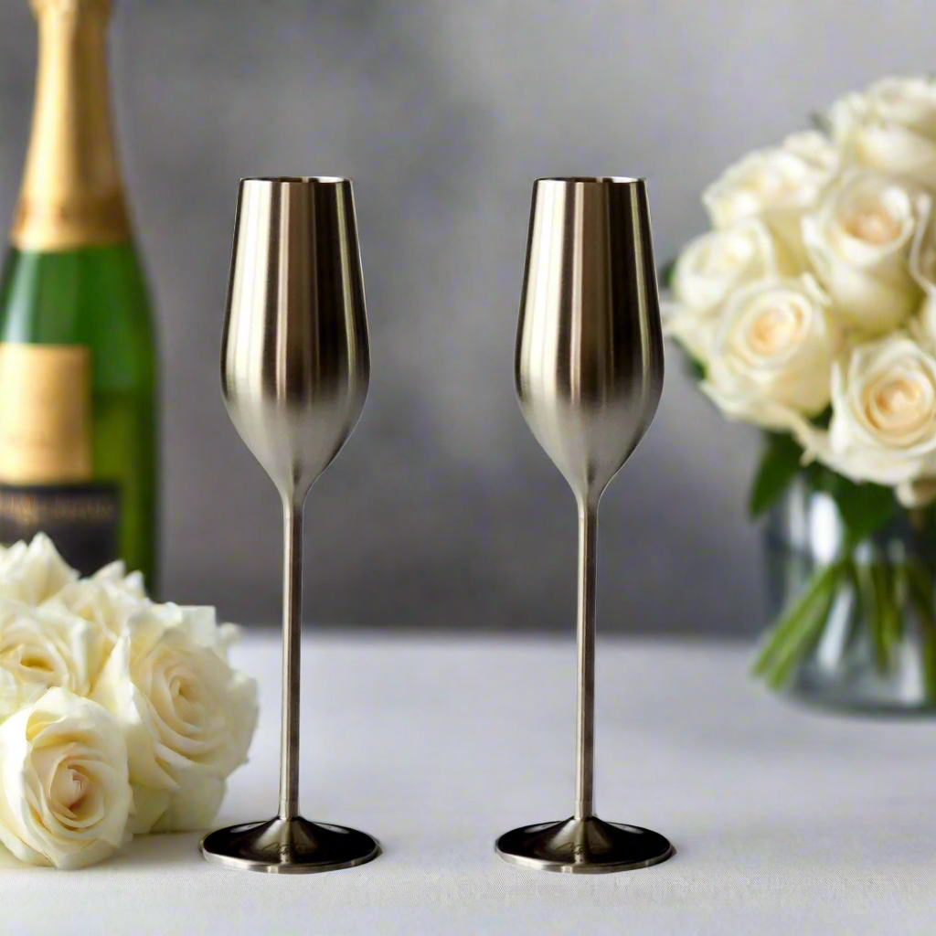 - Whether you're toasting a special milestone or enjoying a casual gathering with friends, our Stainless Steel Champagne Flutes are the perfect companion for your indoor or outdoor celebrations.